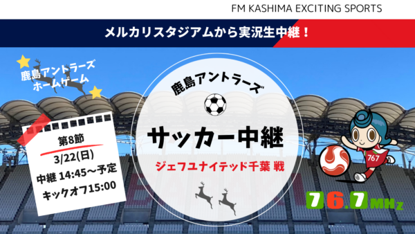 鹿島アントラーズvsジェフ千葉|3/22実況生中継をFMかしま76.7MHzで!
